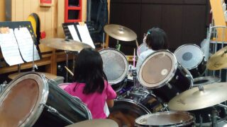太鼓の音、ピアノの伴奏、そして小さな体からあふれるエネルギーが、雨音をかき消すように響き渡ります。